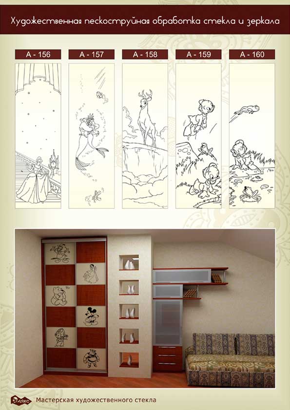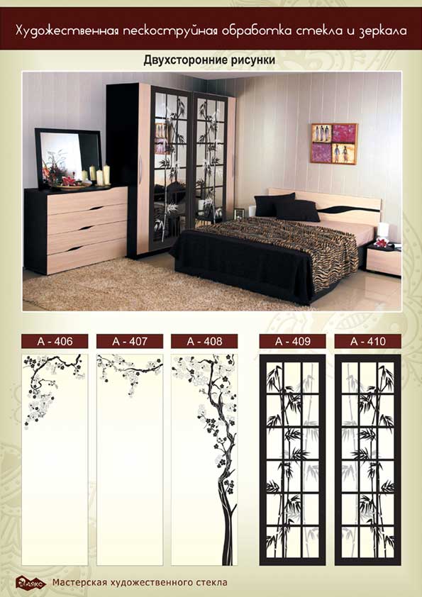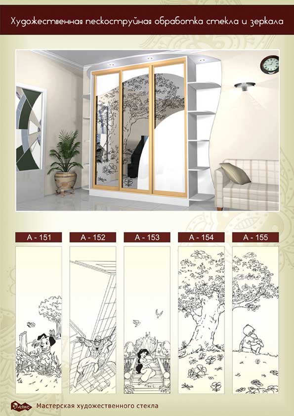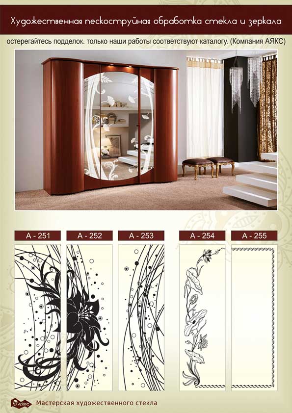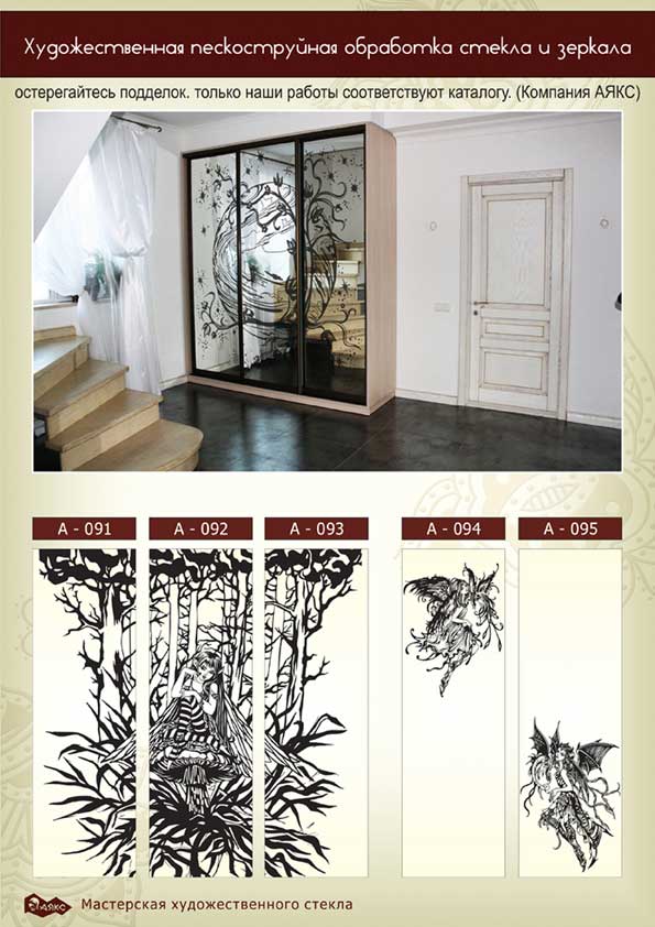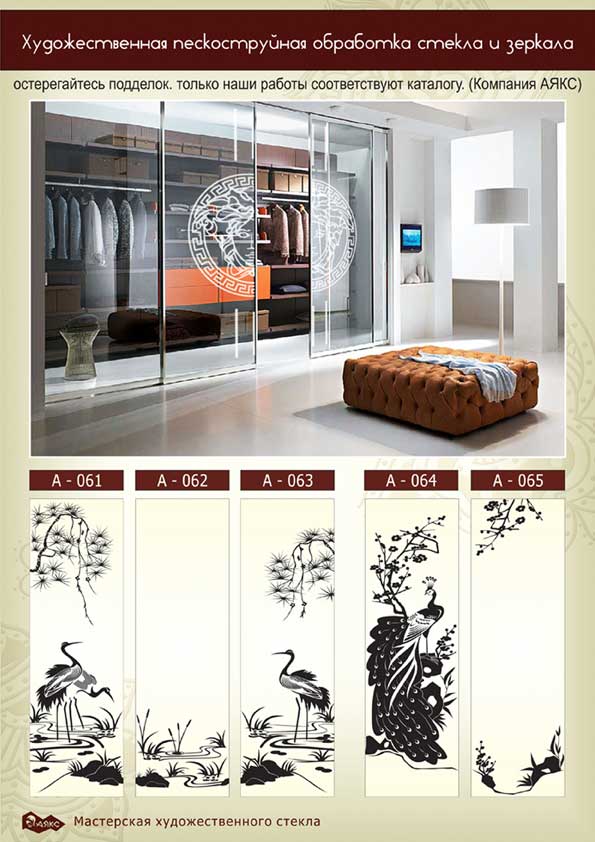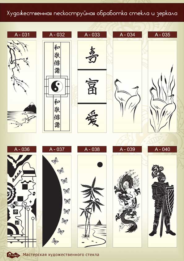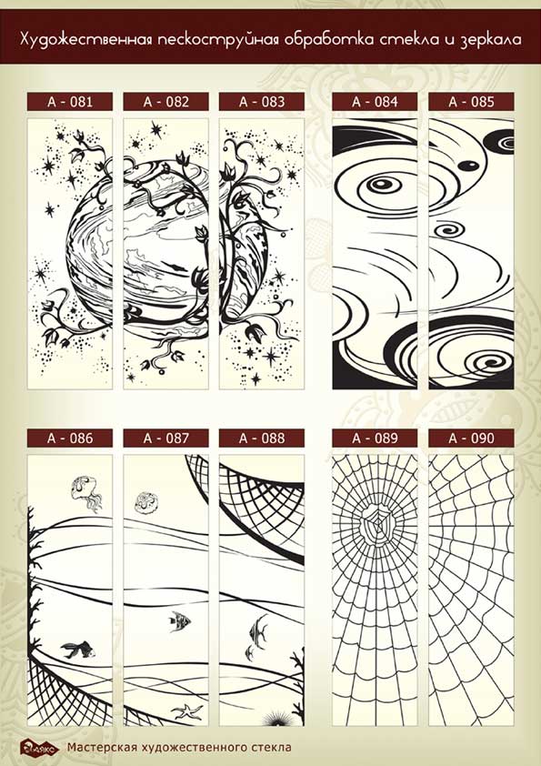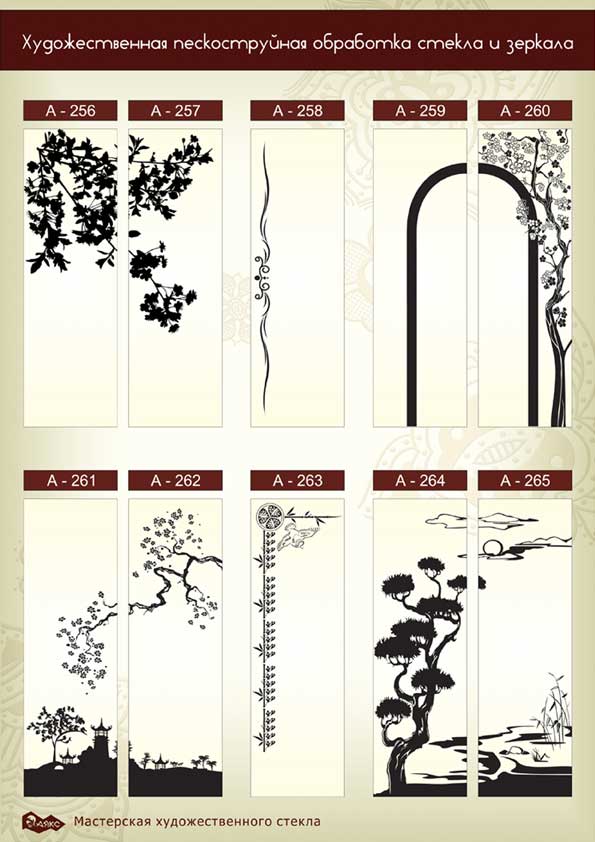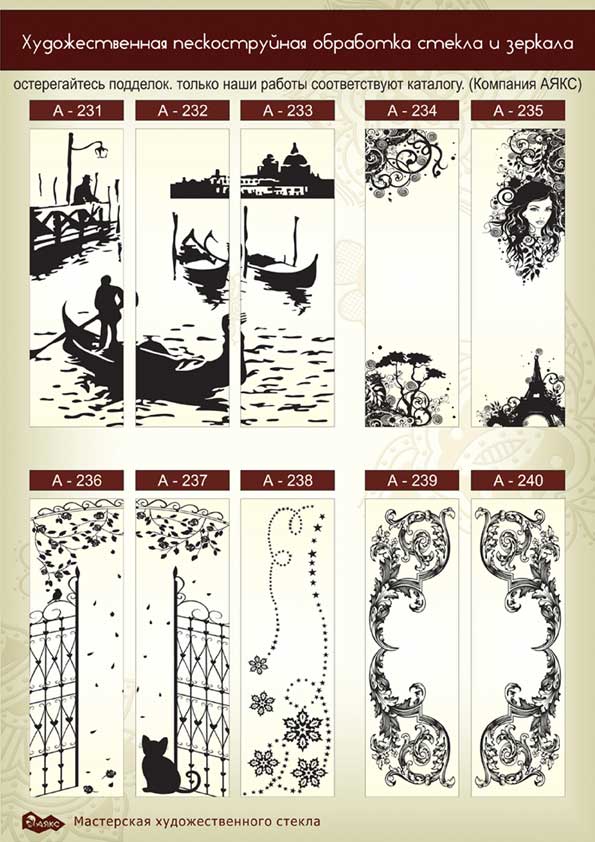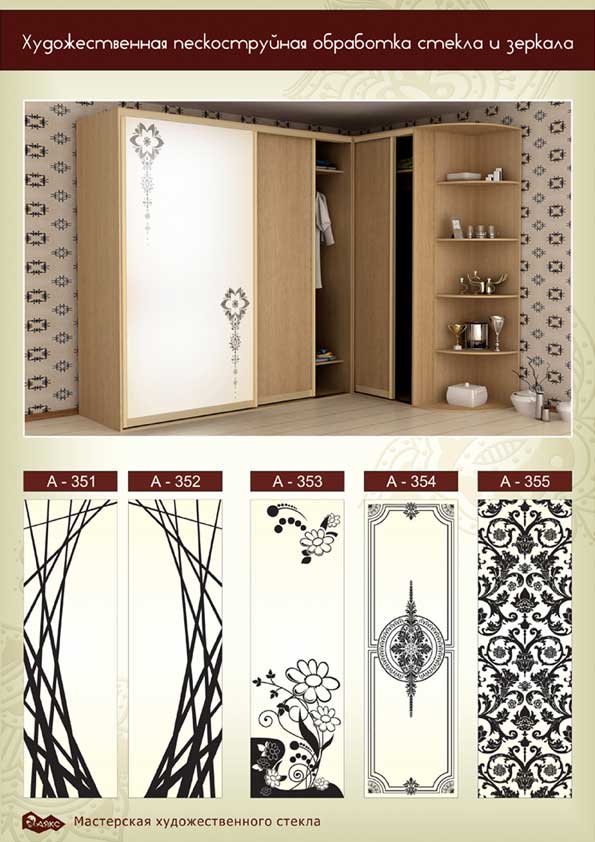 Стекольная мастерская в Санкт-Петербурге выполняет пескоструйную обработку стекла и зеркал на современном оборудовании. Наносим матовые рисунки, узоры, полосы и декоративные элементы по готовым макетам или индивидуальным эскизам.