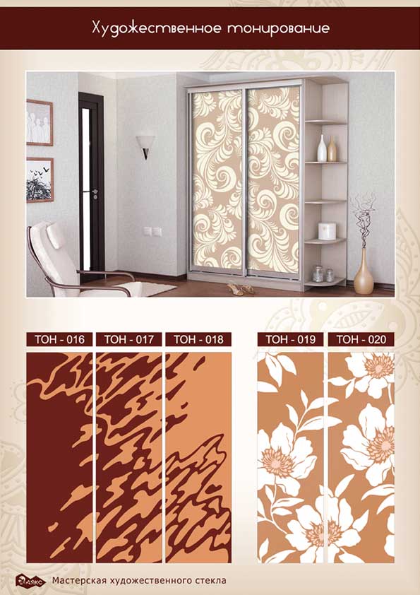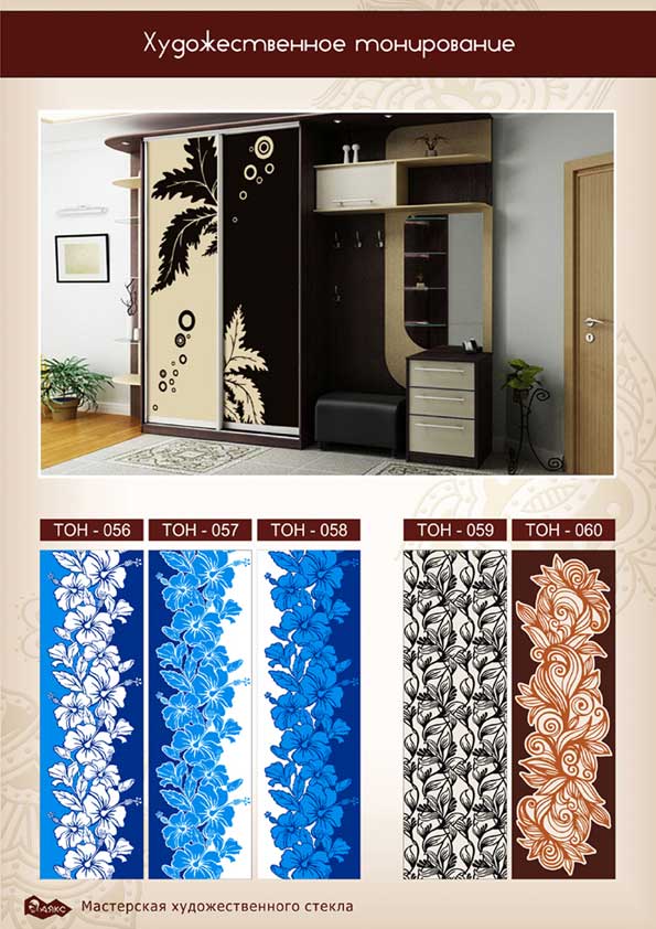 Подберем оптимальный вариант обработки под ваш интерьер и задачу. Рассчитаем стоимость, сроки изготовления и поможем выбрать рисунок, который будет хорошо смотреться на конкретном изделии.